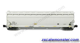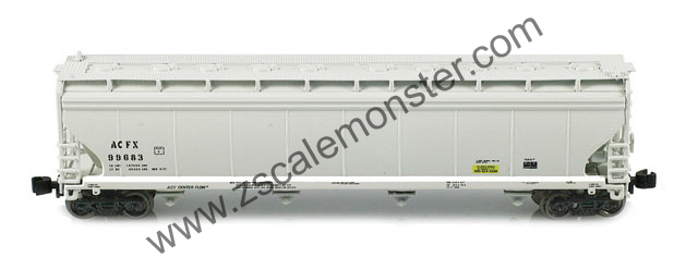 • Built in the early 1970s by ACF to haul plastics and different types of granular commodities, AZL's model represents the post-1971 version of the ACF 5250 4-Bay Covered Hopper Car that was used by railroads and private shippers across North America. Standard features include multi-color pad printing, Blackened metal wheels, and AZL's AutoLatch automatic couplers. |